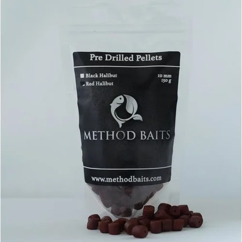 De Pre-Drilled Pellets zijn zoals de naam al zegt voorgeboorde pellets. Deze pellets kunnen aan een rig worden bevestigd, maar met een bait band blijven ze doorgaans beter zitten. De gaatjes zijn ruim, afhankelijk met welke dikte bait band u vist, kan het elastiekje fungeren als hair. De pellets zijn verkrijgbaar in 2 varianten: Red halibut en Black halibut. De pellets worden verpakt in stevige hersluitbare zakken van 150 gram, de Pre-Drilled Pellets zijn 8 mm groot.