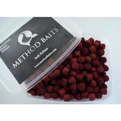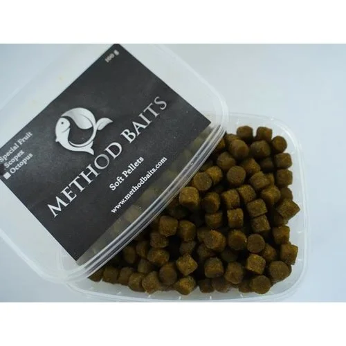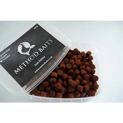 Soft pellets zijn attractieve haakaasjes, met een sponzige structuur. Deze structuur zorgt ervoor dat de pellets onderwater veel lokstoffen loslaten. De Soft Pellets zijn o.a gemaakt met de Method Baits vloeistoffen, deze vloeistoffen zijn allen op alcoholische basis. Dit zorgt voor een snelle respons onder water, de flavours blijven rustig maar constant verticaal uitlekken ongeacht de watertemperatuur. Soft pellets kunnen zowel direct op de haak worden bevestigd als op een hair. Een bayonet heeft te weinig grip en zal de soft pellet los laten bij het inwerpen. Een klein handje soft pellets mengen door het grondvoer kan je voer een enorme boost geven.
