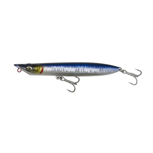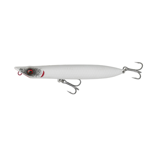 There are several key parameters that make a topwater lure special and the Slap Walker has got them all, and then some. The most striking characteristic is the dimpled, golf ball-style surface of the lure, which has multiple benefits: it helps reduce drag in the air to improve castability, it helps boost reflection of light in more directions, and the dimples trap air that gets released as small bubbles when underwater. The flat face of the lure slaps the surface when fished walk-the-dog style or skipping style – this can be heard better by predators thanks to the lures very discreet rattling. An innovative lure that will catch you plenty of seabass, leerfish, bluefish, mahi mahi, barracuda and other topwater predators.