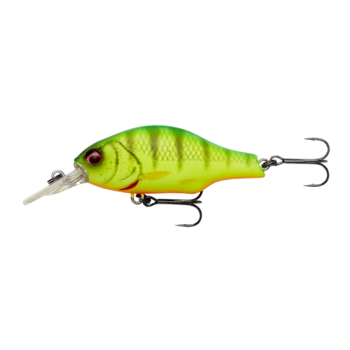 Super detailed Crankbait, with superb details. Square bill, medium runner, with a high arched Back, moving a lot of water on retrieve, great wobbling, wide action, with high buoyancy, moving up in the water on spin stop. Built in tubular rattle chamber, that sends out a loud and characteristic sound. The magnetic long cast system, with a sliding iron core, makes far and precise casting super easy. Great lure for Perch, Pike, trout, Zander, Asp and Bass.