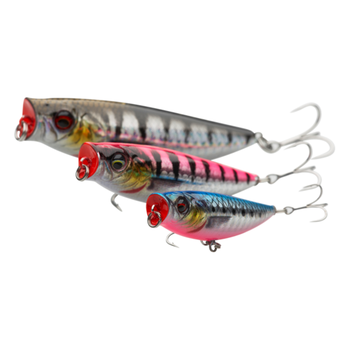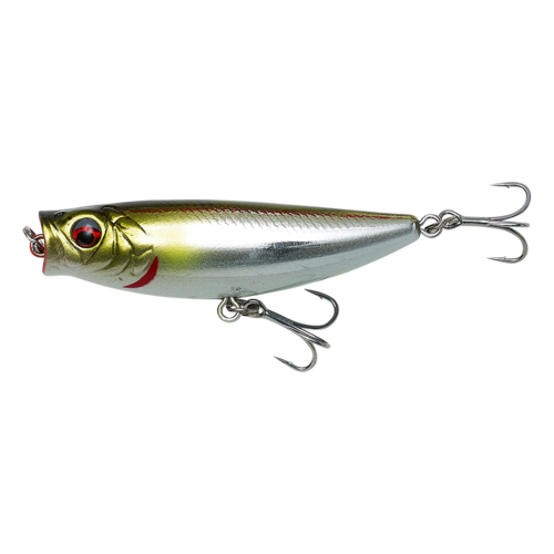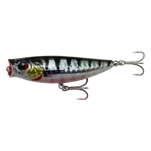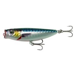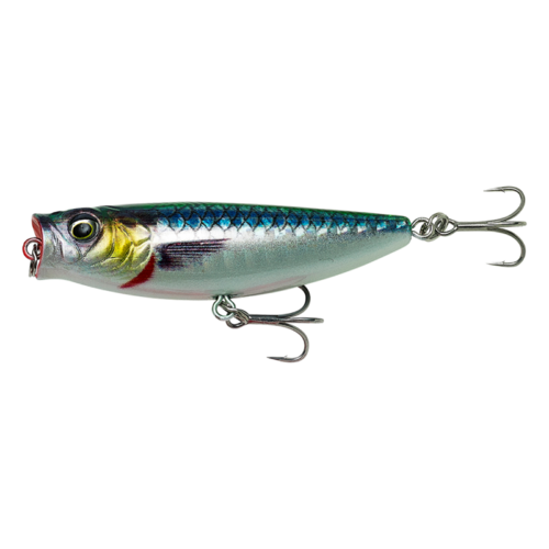 Based on a 3D Scan odf a baby sardine. The lure is not a popper, it is not a walker, it is both! The perfect “Hybrid” of a popping and a walk the dog lure. The Pop walker can perform a perfect WTD action or it can pop if the angler simply pulls It with the rod tip down! With the rod tip a bit higher, the Pop Walker “walks” with popping and splashing action. A great light game all species topwater lure with great casting distance!Fishing methods: With slow twitch while retrieve, this lure will perform a wide and slow WTD action, and with fast twitch will perform fast and sharp walk the dog action. With longer pulls and rod tip down this lure have a great popping action.