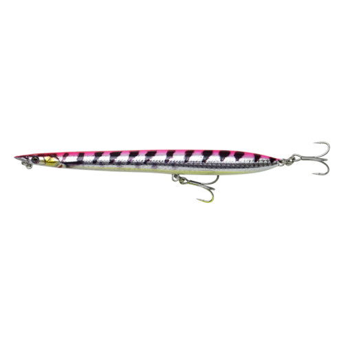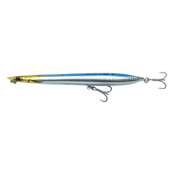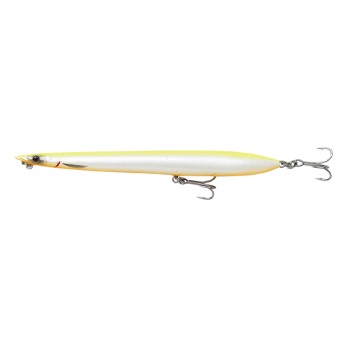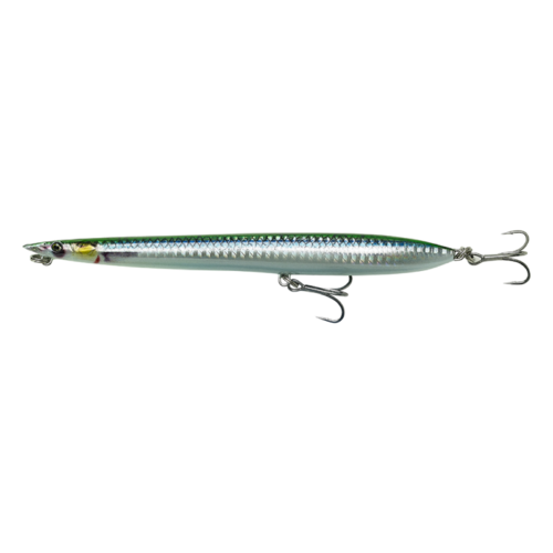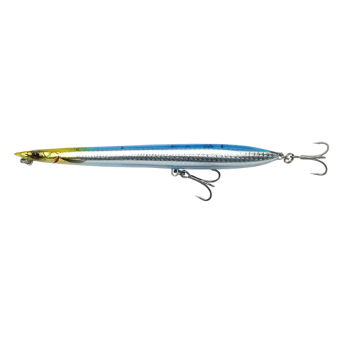 Based on the perfect 3D Scan of a real Sandeel. The long slender Strong Hard ABS body has the most incredible side-to-side action on the twitch and a slim S-curve action on straight retrieve. The Floating version has a horizontal balance. slightly keeping the head up on the spin stop – creating the perfect wounded baitfish profile. The long cast design is silent – the perfect top water lure for more wary predator fish.Fishing Method: Slow twitching while retrieve and the lure will perform wide slow side to side action, and with fast twitch will perform fast and sharp side to side action. With the rod tip high and fast retrieve, the lure will perform skipping action imitating a feeling Prey fish.